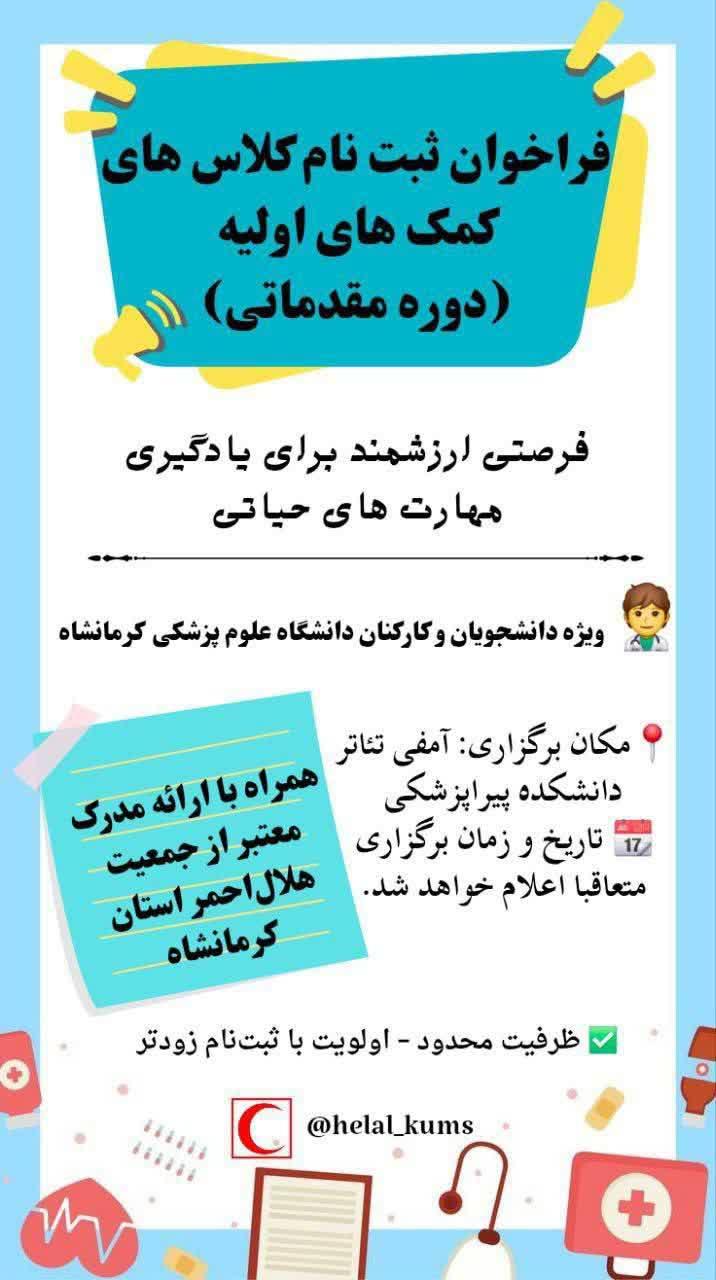 فراخوان کلاس کمک های اولیه دوره مقدماتی